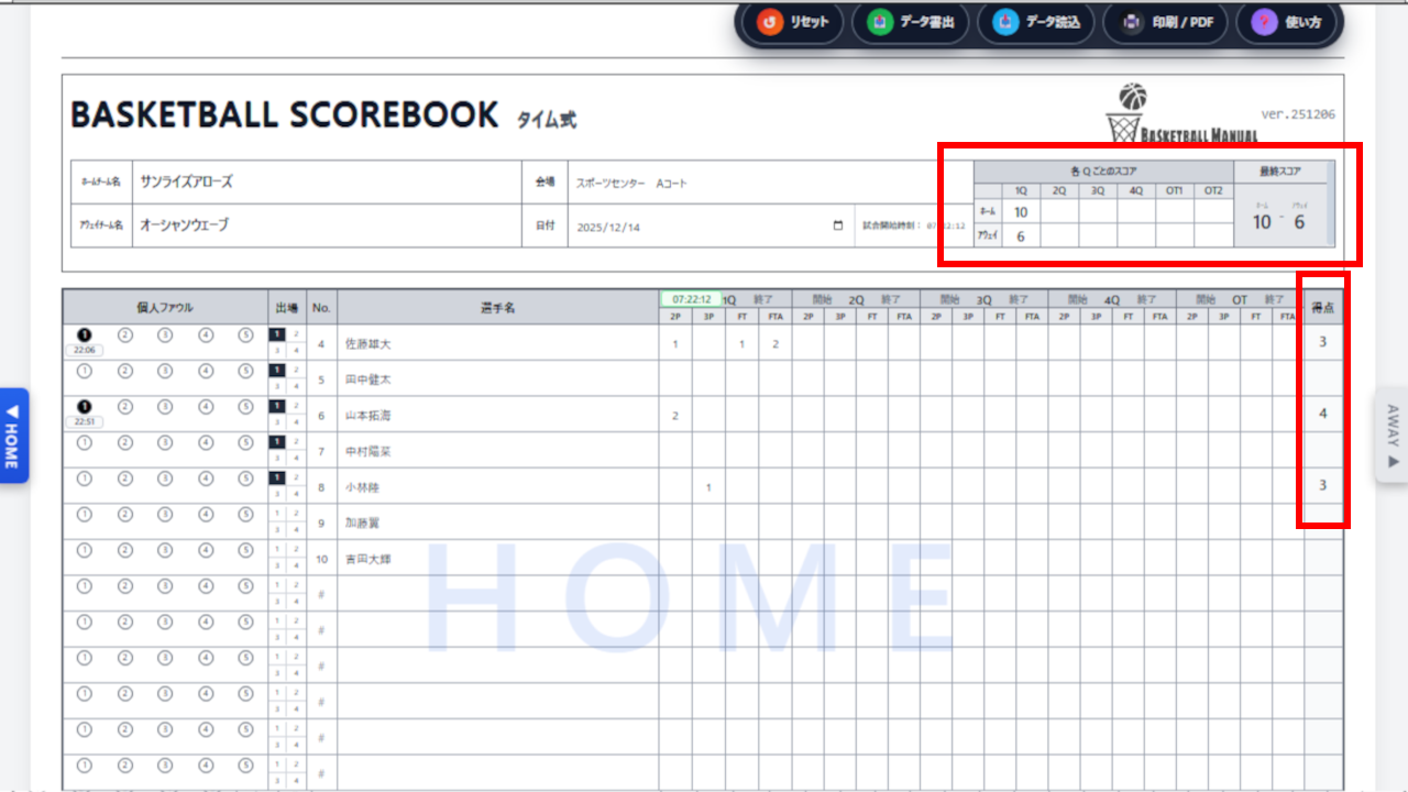 Your data won’t be lost during normal use. However, if you clear your browser’s browsing history (cache), LocalStorage data will also be deleted. As the safest approach, we recommend exporting to JSON at halftime or after the game ends.