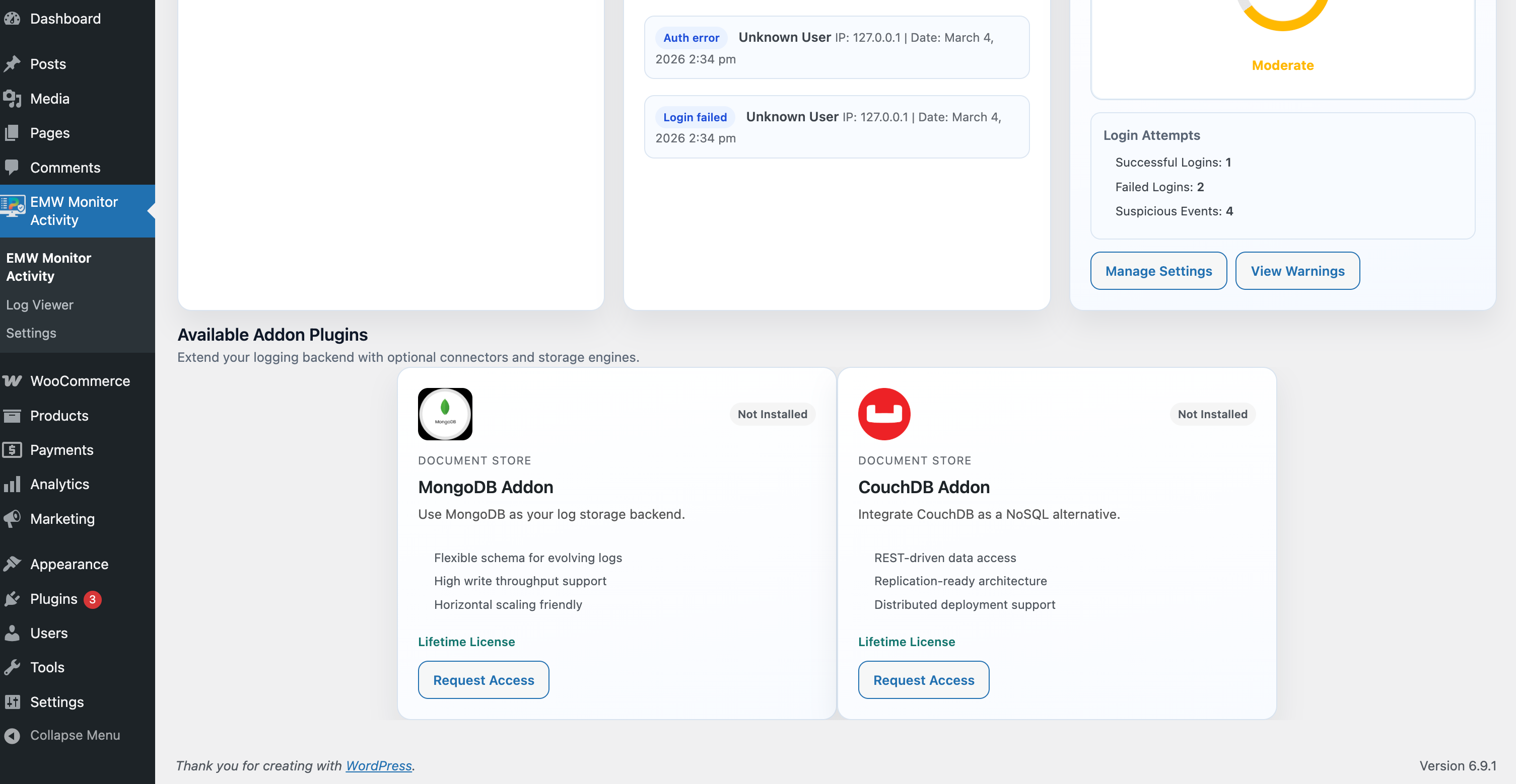 EMW Monitor Activity Log helps site owners audit important events in the WordPress admin area.