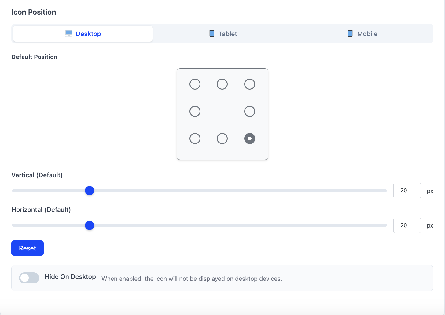 Widget settings: icon positioning on different devices